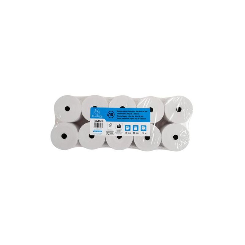Format de la bobine : 80 mm de laize (largeur) et 70 mm de diamètre. Métrage (+ ou - 2m) : 72 m. Mandrin standard de 12 mm. Convient à toute marque de caisse thermique.