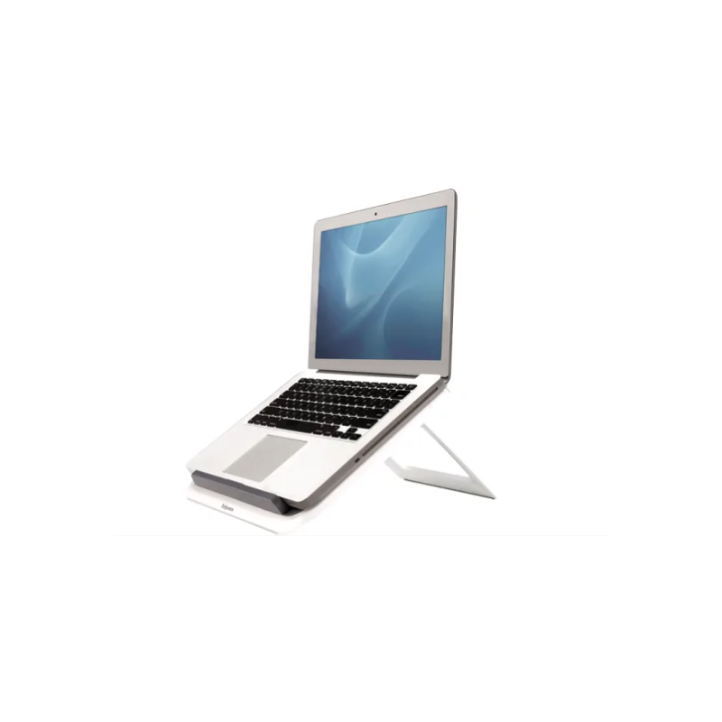 L'élévateur rapide de Fellowes pour ordinateur portable se règle simplement sur sept angles. Il convient aux ordinateurs portables dont l'angle d'ouverture est limité. Il est doté de pieds avant rabattables pour optimiser le positionnement de l'écran sur tout ordinateur portable jusqu'à 17 ou 4,5 kg.
