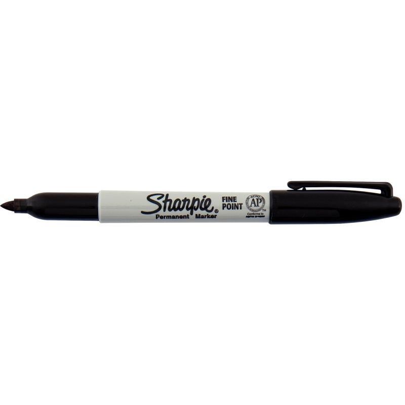 Marqueur Sharpie noir pointe fine 1 mm, encre indélébile résistante à l’eau.